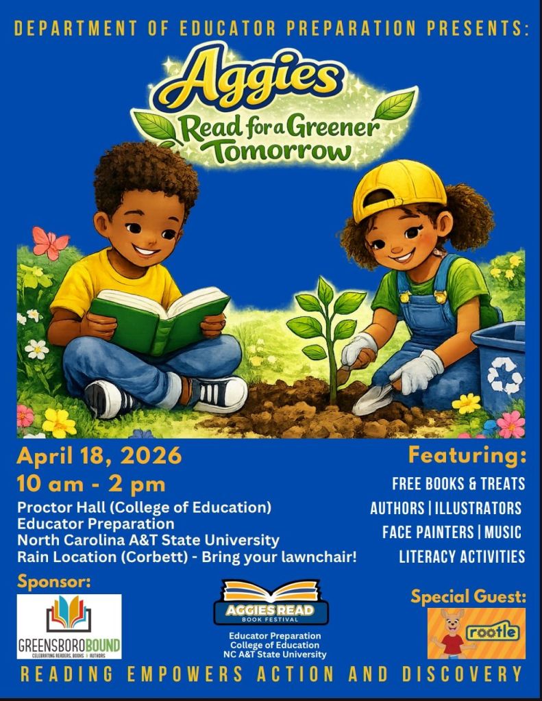 Aggies READ (Reading Empowers Action and Discovery) is an annual book festival geared towards empowering young readers about literacy. The Department of Educator Preparation at the College of Education at N.C. A&T. is hosting this event for its fourth year.