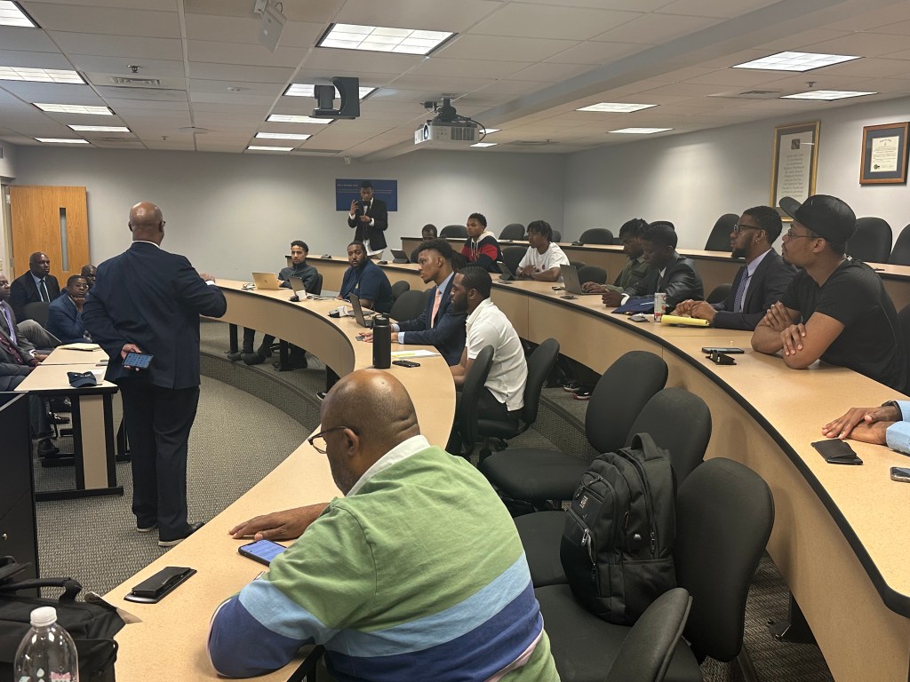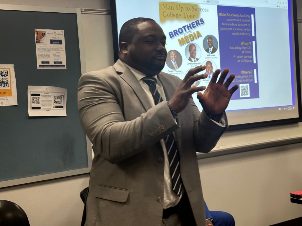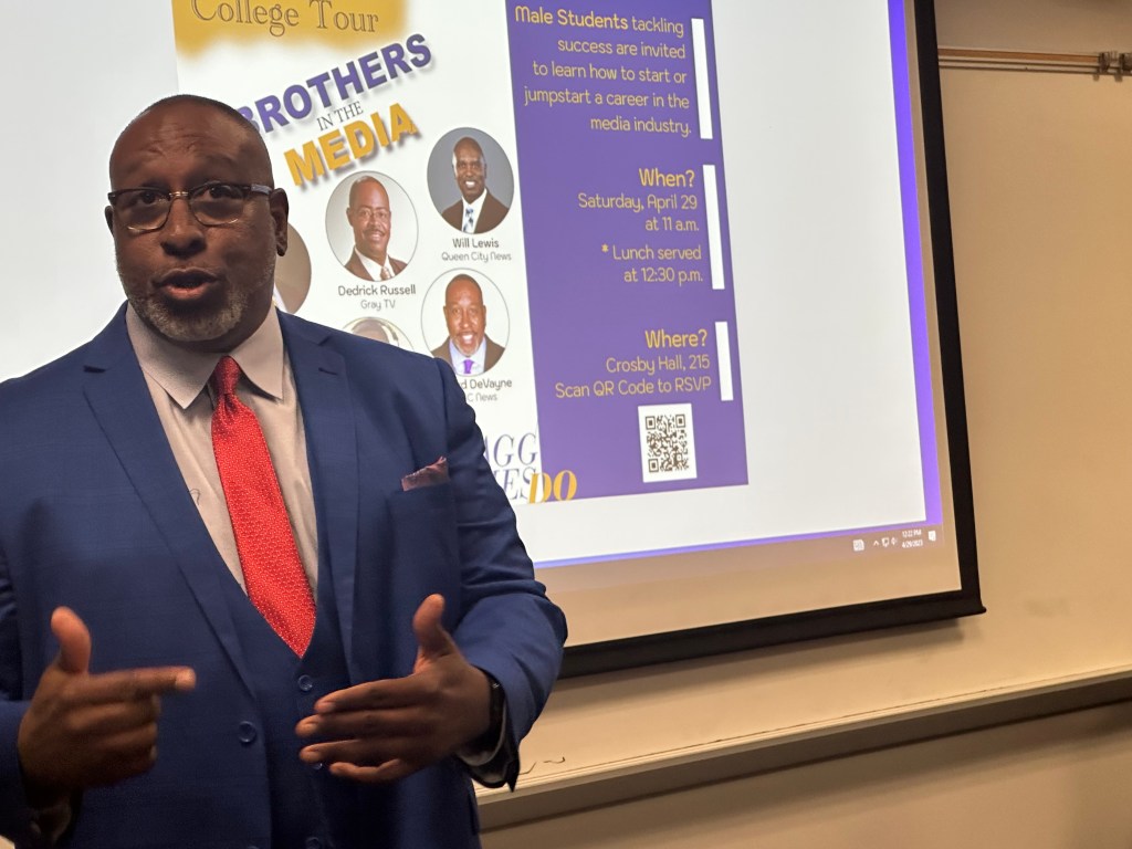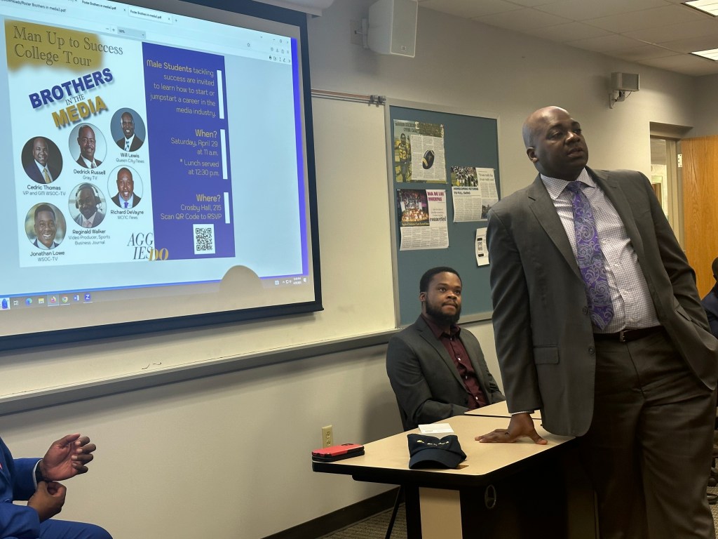 The charlotte based organization, ‘Brothers in the Media’ spent a Saturday in Crosby hall mentoring our male media students. They discussed career success, “paying your dues” before landing the big roles, networking, and other topics any aspiring journalist would want to know before starting in the industry.