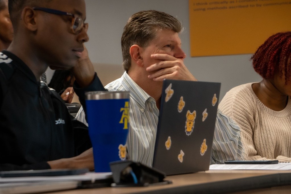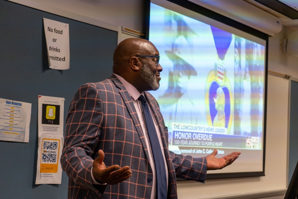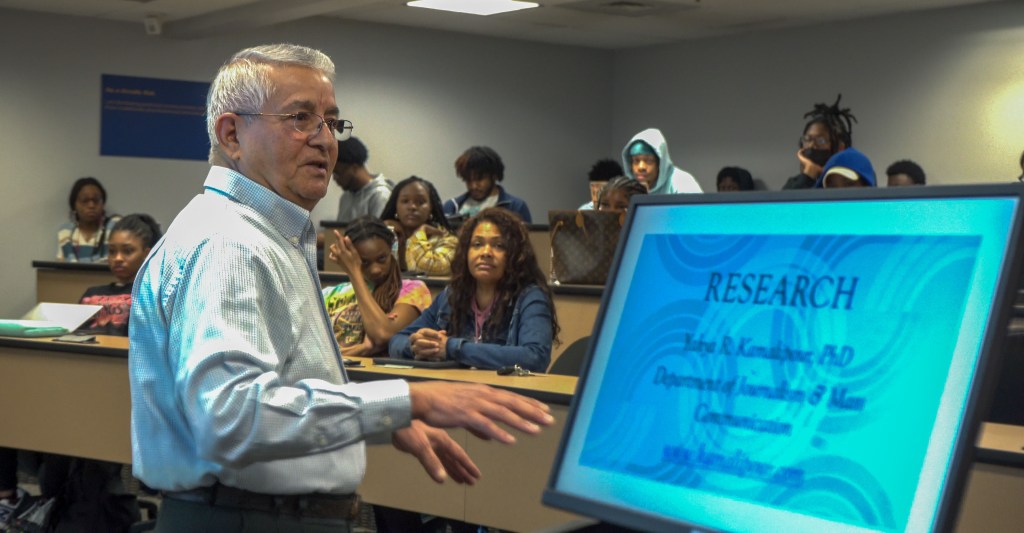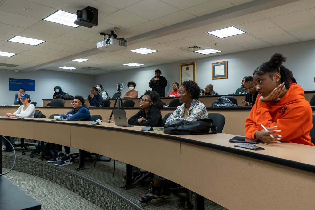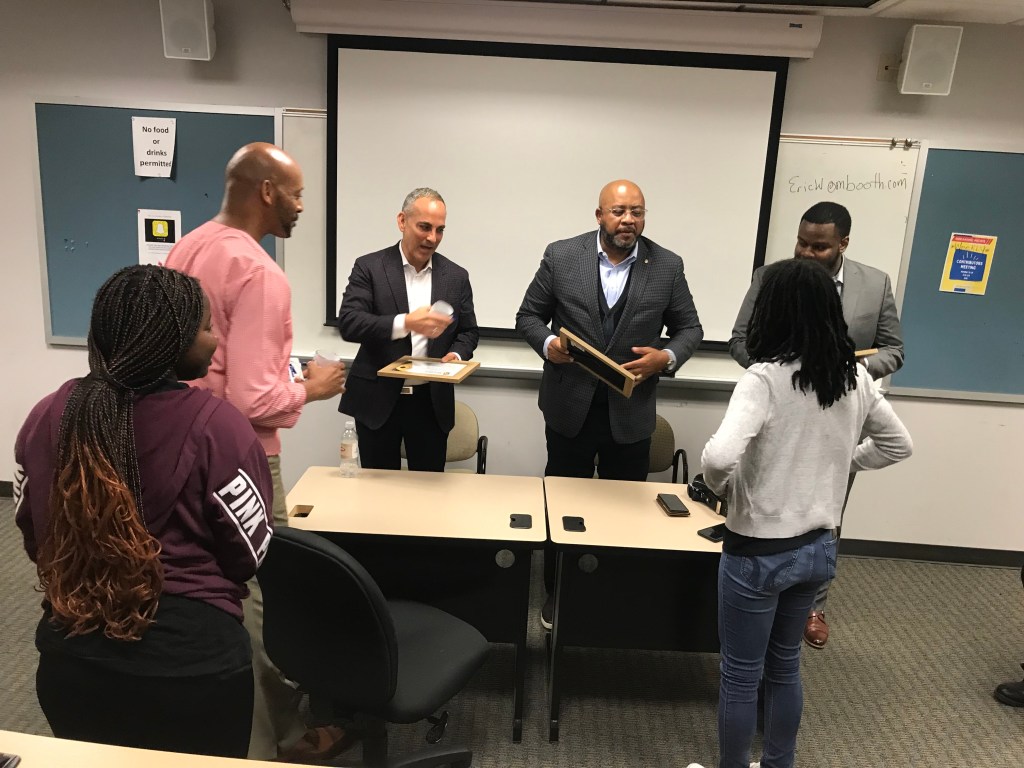 The charlotte based organization, ‘Brothers in the Media’ spent a Saturday in Crosby hall mentoring our male media students. They discussed career success, “paying your dues” before landing the big roles, networking, and other topics any aspiring journalist would want to know before starting in the industry.